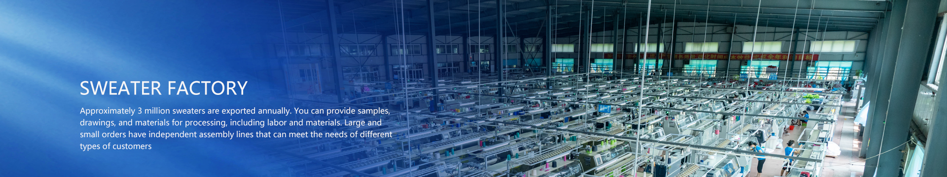 Dandong Huayang Sweater Factory is a subsidiary of Dandong Huayang Textile and Clothing Co., Ltd. It was established in 2009 with an investment of 50 million yuan and has a complete set of sweater production lines, including self-developed, woven, sewn, washed, patched, and packaged sweaters. Located in the largest and most beautiful border city of China, Dandong, with a factory area of over 10000 square meters, we have 226 computer flat knitting machines (12G, 100 units, 3.5G, 26 units, 3G5G7G, 100 units, 14G10 units), 20 auxiliary material machines, and 300 sweater sewing machines. There are 10 special sewing equipment and more than 360 employees in the enterprise, including 18 management personnel and 20 technical personnel in the process and punching. Approximately 3 million sweaters are exported annually. You can provide samples, drawings, and materials for processing, including labor and materials. Both large and small orders have independent flow charts, which can meet the needs of different types of customers.